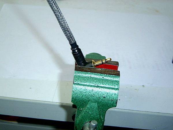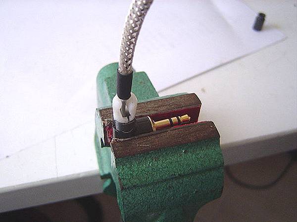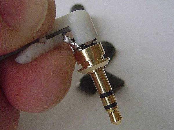 焊上左右聲道及負線~記得一樣要先試裝一下3.5mm頭內部白色的卡榫