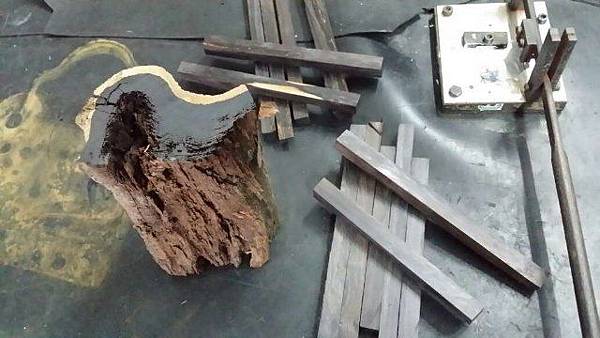 再來看看圖~正宗黑檀木原木開料,原木中間爛了一大塊!損失慘重ㄚ