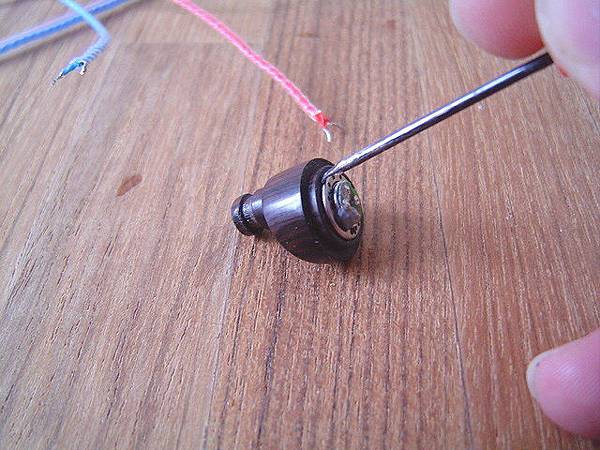 再將前最鑽個0.3~0.5mm的小孔---黑檀木非常硬要慢速鑽,不然鑽針會斷...鑽到冒煙時做停一下後再鑽!