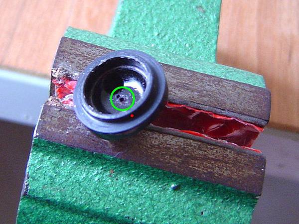 這個孔的位址是在中間---但要小心點鑽,因為離前嘴管很近!