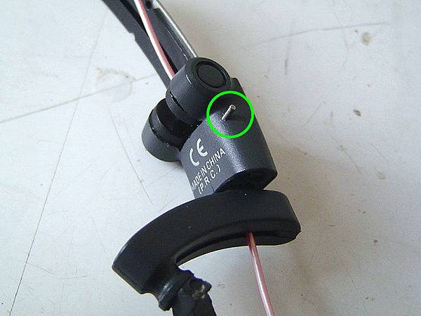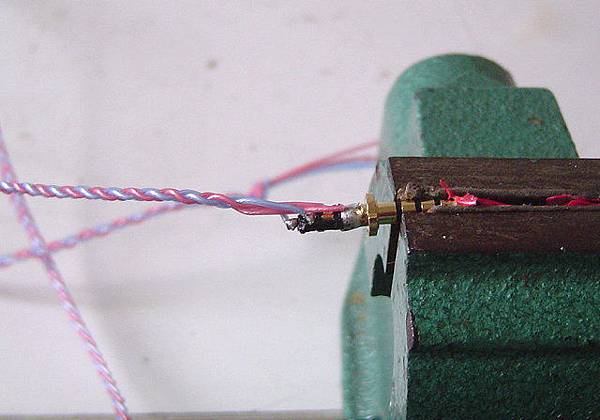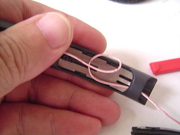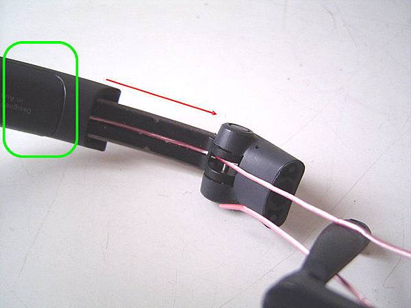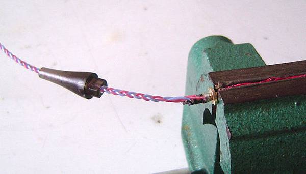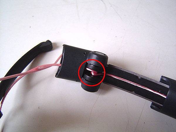 將線塞入旋轉桿的暗溝中(可以上一點點的膠水在溝內固定線材)