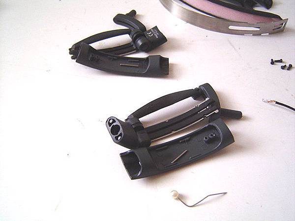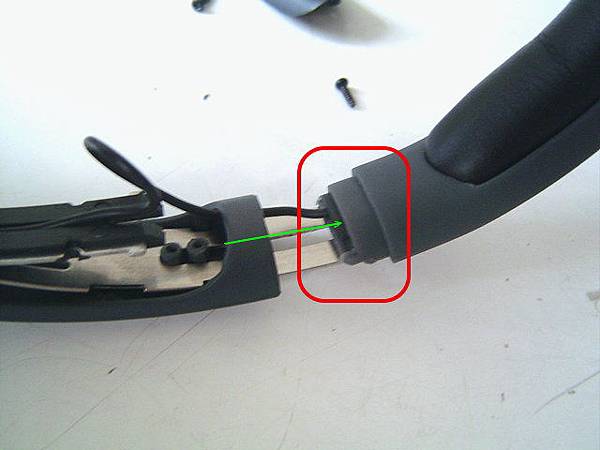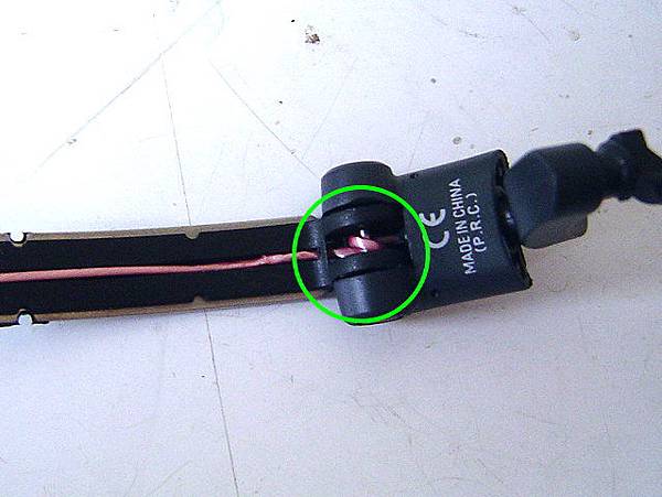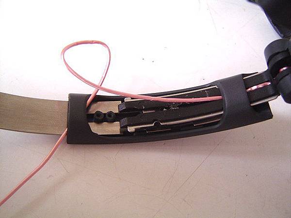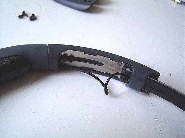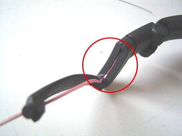 再將此部位的兩顆小鏍絲打開,可以看到裡面有一段彎曲的預留伸展線段,我們更換線時也要如此照做!